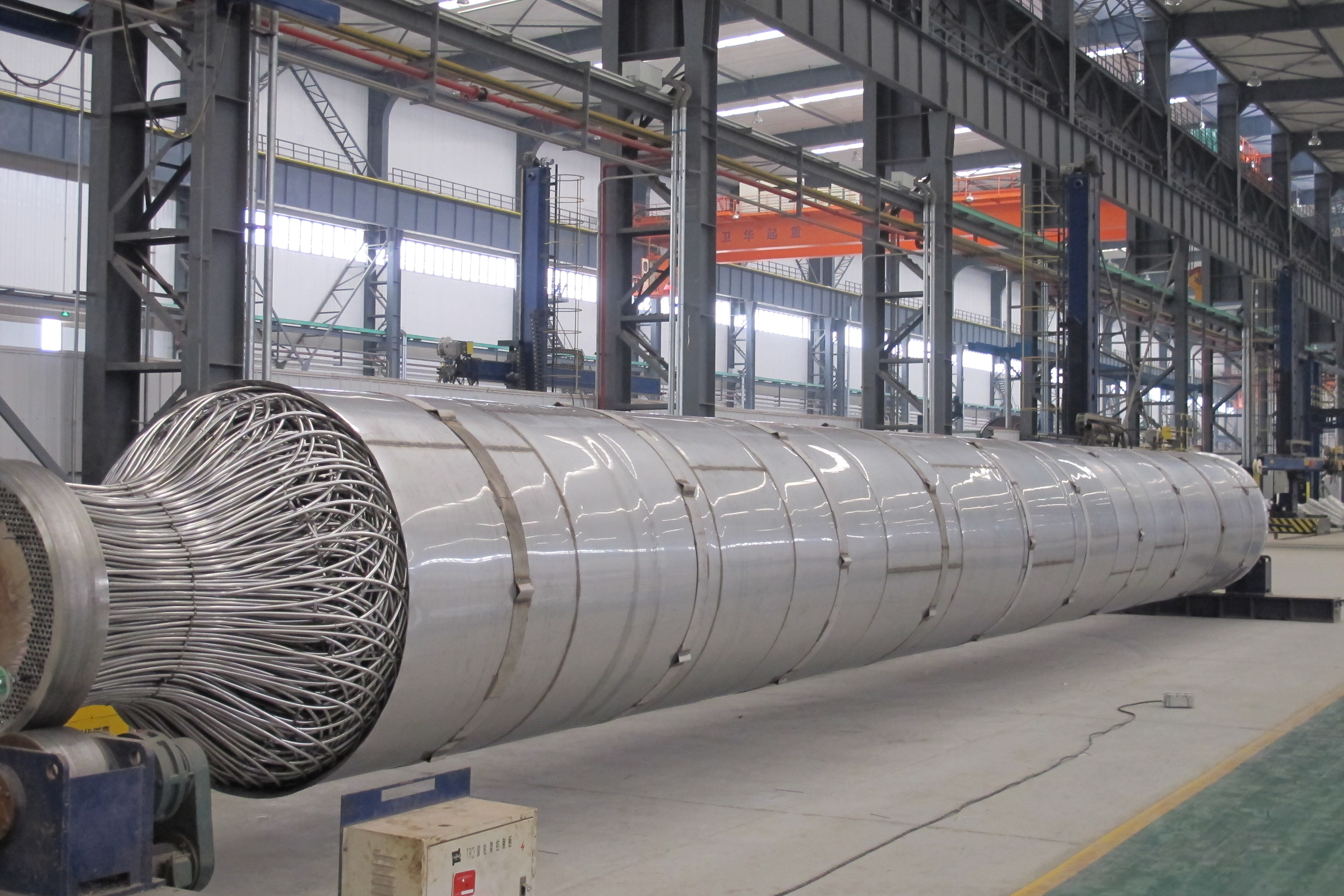 開封空分集團(tuán)是國(guó)內(nèi)集設(shè)計(jì)生產(chǎn)制造為一身的大型繞管式換熱器生產(chǎn)基地,擁有起重350噸行車4臺(tái),已經(jīng)生產(chǎn)制造出重量130噸,直徑4米的纏繞管式換熱器設(shè)備。多年來創(chuàng)造了多項(xiàng)發(fā)明專利,獲得了國(guó)內(nèi)繞管換熱器的多項(xiàng)第一,并同中海油、中石油簽訂共同研發(fā)高壓繞管換熱器的戰(zhàn)略合作協(xié)議。