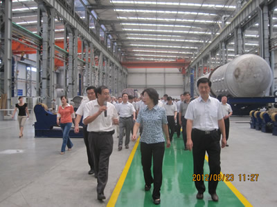 8月23日上午,三門峽市市長(zhǎng)趙海燕帶領(lǐng)黨政代表團(tuán)在開封市常務(wù)副市長(zhǎng)黃道功、開封新區(qū)黨工委書記焦躍進(jìn)的陪同下考察了開封空分新廠區(qū)項(xiàng)目建設(shè)情況及生產(chǎn)運(yùn)行情況。圖為公司副總經(jīng)理薛金河正在向代表團(tuán)介紹新廠區(qū)建設(shè)情況。