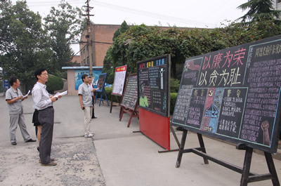 (圖為板報評比現(xiàn)場。)