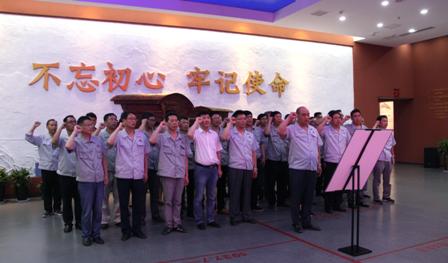 在宣誓廳,由公司黨委書(shū)記、董事長(zhǎng)曾祥志領(lǐng)誓,全體黨員整齊列隊(duì),舉起右拳、面對(duì)黨旗,重溫了入黨誓詞,鏗鏘有力的誓言響徹宣誓大廳。