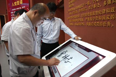宣誓完畢,每位黨員在黨旗的映襯下,在《共產(chǎn)黨員承諾書(shū)》上莊嚴(yán)簽名。