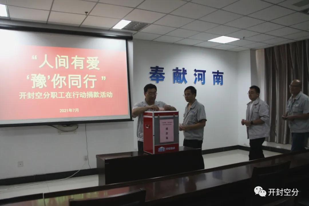“人間有愛 ‘豫’你同行”開封空分職工在行動捐款活動,彰顯了國企擔當責任,助力河南防汛搶險、恢復生產(chǎn)生活秩序工作,為凝聚眾志成城的強大合力貢獻開空力量。