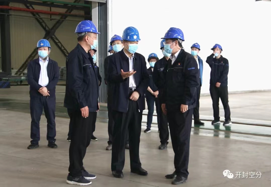 4月21日,河南能源董事長梁鐵山一行來到開封空分,調研了解生產經營、改革發(fā)展等工作情況。河南能源副總經理趙廷釗,公司領導盧宏偉、冷雪峰、曹小毛、馬源、王志峰、朱耀成陪同調研。